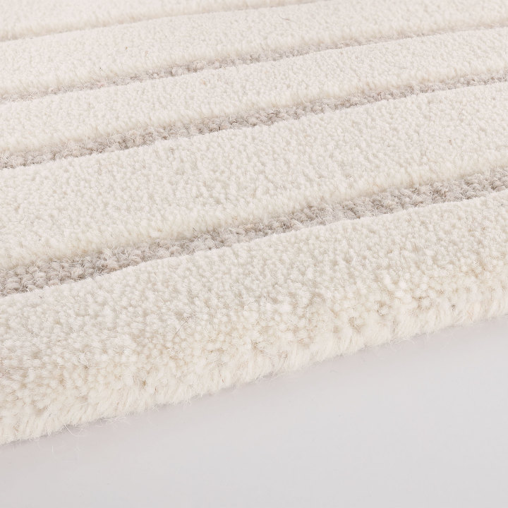 A luxuriously deep, cut and uncut pile of organic stripes create a graphic design full of character and texture. Celebrating craftmanship, the rug is hand tufted from natural wool and hand carved creating additional depth and dimension.