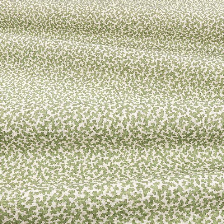 Inspiriert von den zarten Formen der Koralle, präsentiert diese bedruckte Leinenmischung aus Bio- und recycelter Baumwolle ein vielseitiges, kleinformatiges Muster, das ein Gefühl von Bewegung in den Markierungen einfängt und den Eindruck von Textur im Design erweckt.