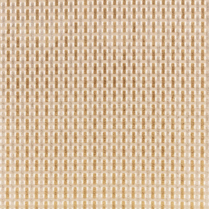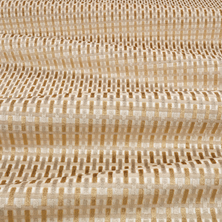 Geschnittener und ungeschnittener Flor in drei Farben verschmelzen zu einem dynamischen Muster. Der Schlaufenflor erzeugt eine dezente, horizontale Rippenstruktur, während der weich geschnittene Flor eine mehrdimensionale Oberfläche formt – im spannenden Kontrast zum luxuriösen Satin-Grund.