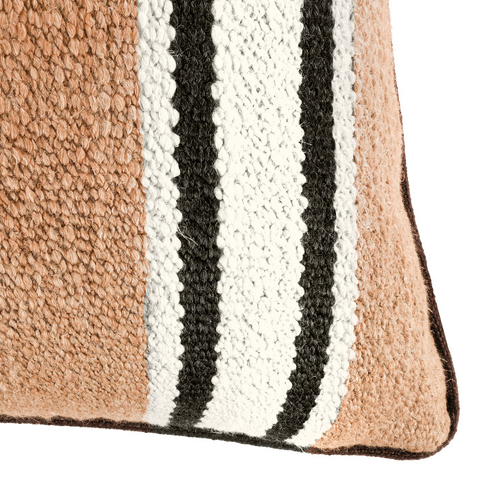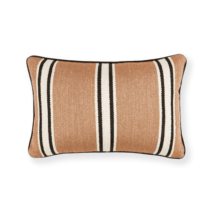 Omba es un grueso tejido de rayas mezcla de lino y lana, que sabe sacar partido a la belleza de las fibras naturales. Este tejido rebosa un atractivo rústico y orgánico, y crea una estética relajada con sus sencillas pero llamativas rayas horizontales que se abren paso por la tela, resaltando su calidad táctil natural.