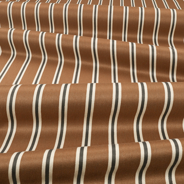 Un giro a la tradición, Tiva es una raya gráfica con una estética elegante. El fino tejido de sarga tiene un sutil movimiento de color creado por una hermosa mezcla de algodón con un toque de lino.