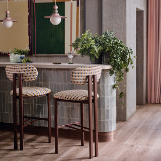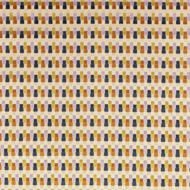 Alternando cuadrados de rizo de terciopelo cortados y sin cortar, se crea un escultural diseño de pequeño tamaño rebosante de textura y color. La variación en el largo del pelo resalta la geometricidad del dibujo y confiere al diseño un aspecto dimensionado.
