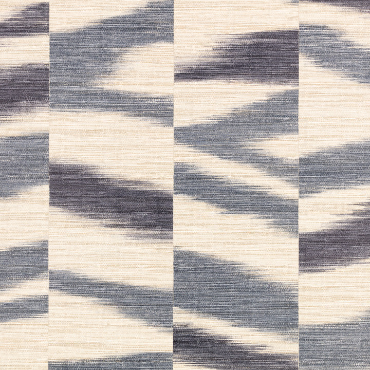 Un montaje de bandas de ikat parece crear un diseño abstracto difuminado en un juego de combinaciones de colores terrosos. Para crear el aspecto y la textura naturales de la zostera marina, Manzu se ha impreso sobre el popular papel pintado en relieve Esai Seagrass, de la colección Textured Wallcoverings Volume I.